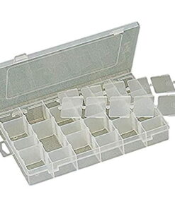 - The clear plastic storage container makes it easy to see inside the boxes
