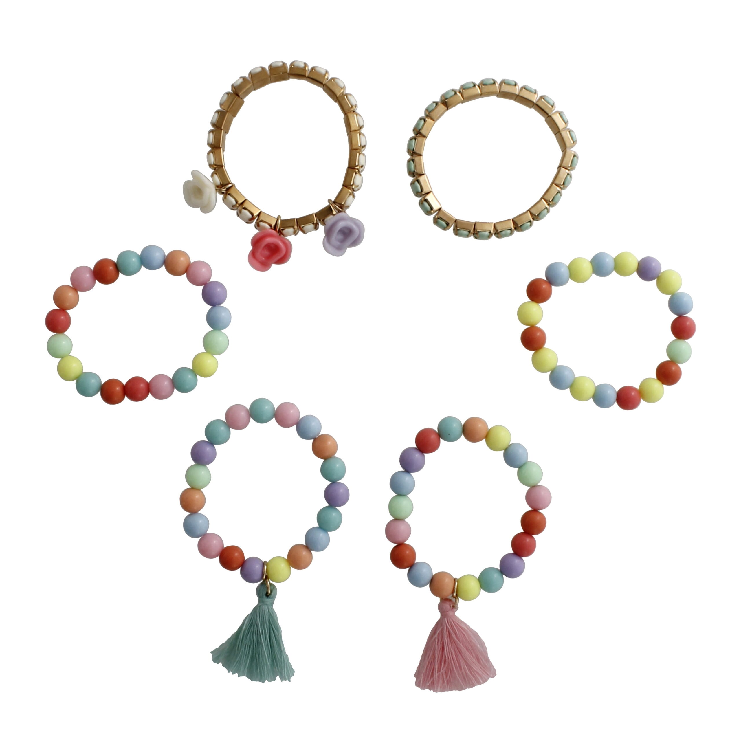 Add some major arm candy with this fun and colorful stretch bracelet set. With 6 pieces you can stack and mix and match to your heart’s content!Intended for ages 4 and up.