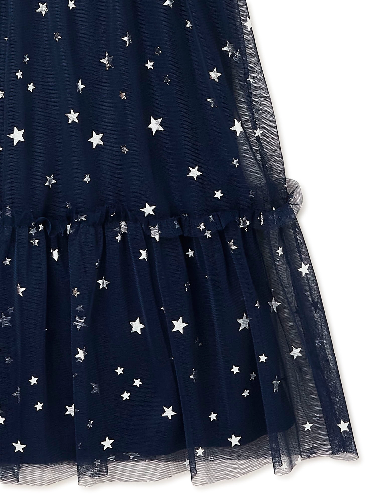 Twinkle, twinkle. This absolutely adorable Wonder Nation Girls’ Foil Mesh Dress features stars to complement her cute look. With a mesh-tiered design, this dress is fully lined with sheer long sleeves for added style. The tag-free neckline brings added comfort while the ruffle skirt keeps it cute and girly. Exclusively at Walmart.