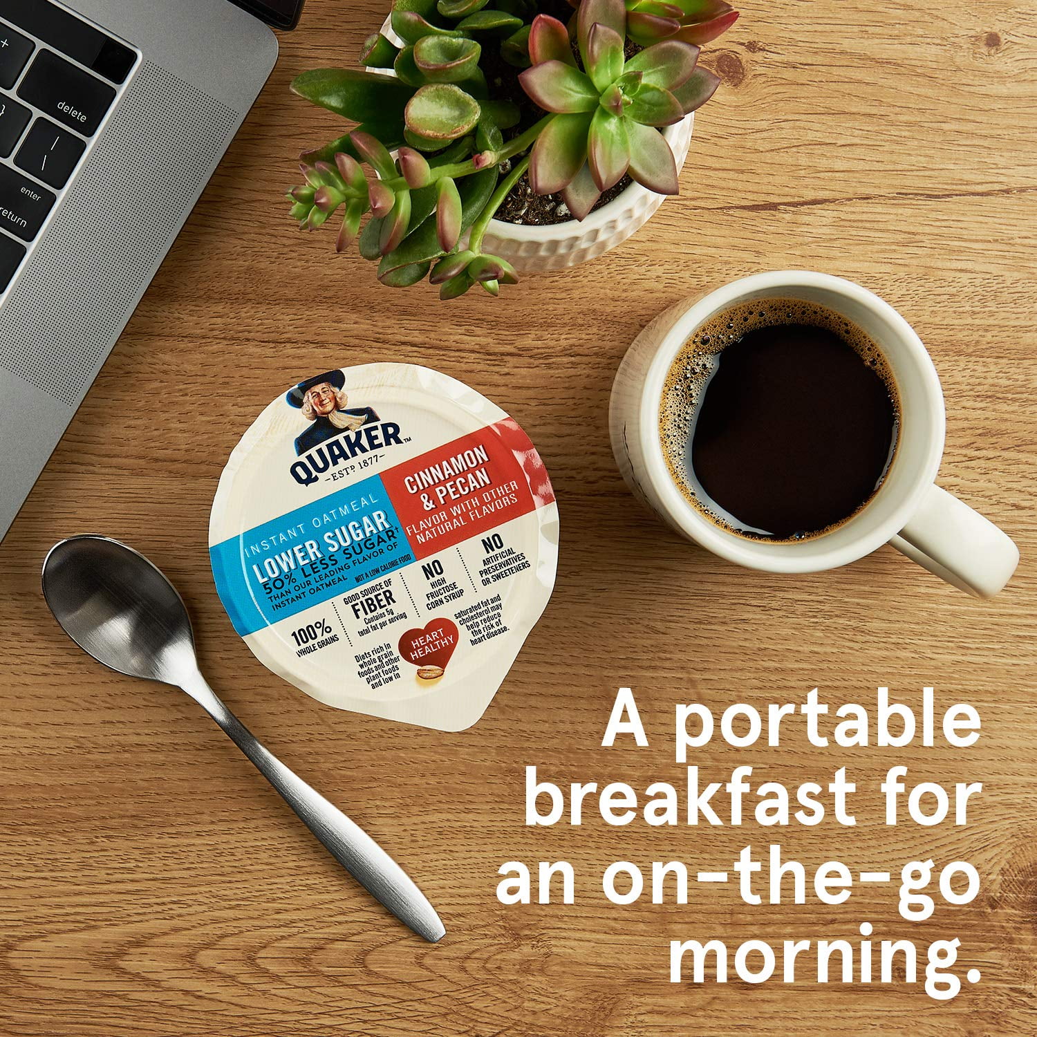 Quaker Instant Oatmeal Express Cups 50% Less Sugar, Cinnamon Pecan, 1.41 Ounce (Pack Of 12)