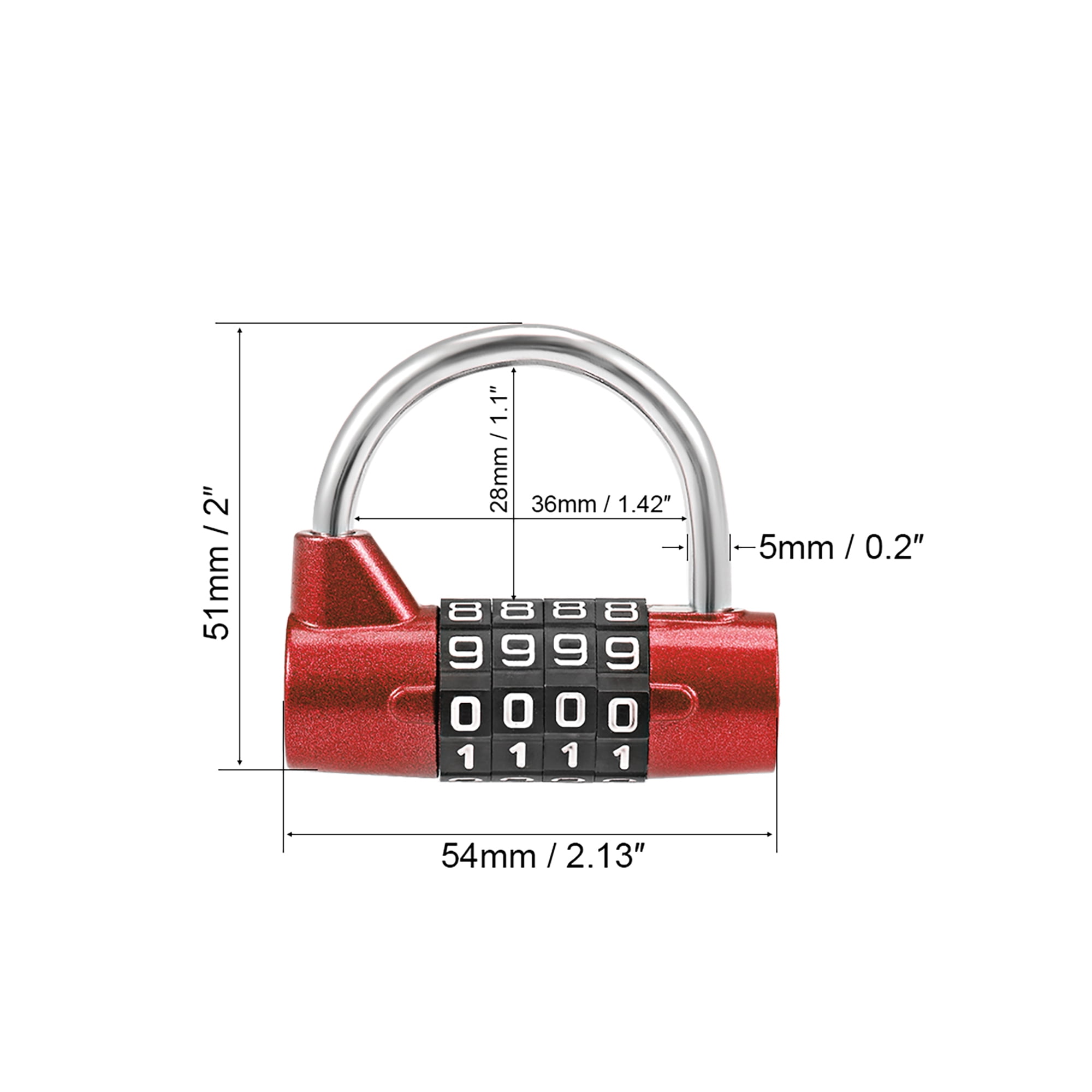 4-Digit Combination Padlock, 2-inch Resettable Lock for Gate Locker Red 2Pcs