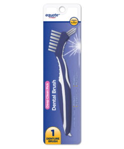 Equate Denture Toothbrush with Deep Clean Pick, Dual Medium Bristle, Manual Brush – 1 Count