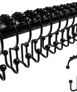 Shower Curtain Rust-Resistant Waterproof Metal Black Double Glide Hooks Rings 12 Count
