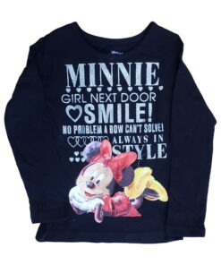 Disney Girls Black Minnie Mouse Long Sleeve Cotton Silver Glitter Tee Shirt 5