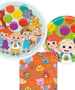 Peach State CoComelon Party Supplies Bundle with Dinner Plates, Cake Plates, and Napkins for 8 Guests