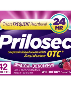 Prilosec OTC, Omeprazole Delayed Release 20mg, Acid Reducer, Treats Frequent Heartburn for 24 Hour Relief, All Day, All Night*, Wildberry Flavor, 20mg, 42 Tablets
