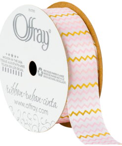 Offray Ribbon, Chevron Carnation Gold 7/8 inch Single Face Satin Polyester Ribbon, 9 feet