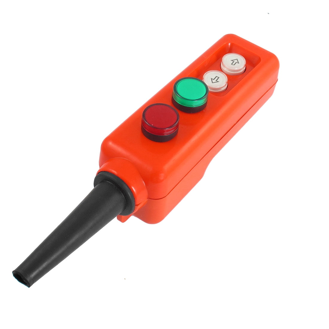 - Features: red and green lamp, up, down, 4 push buttons, momentary contact type. The insulating tube is made of rubber material, can protect the cable well. Ideal pendant control station for Hoist and Crane, it can operater by hand , very easily and conveniently.
