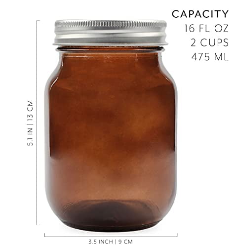 16 Ounce Amber Glass Mason Jars (6-Pack, Pint Size); 16oz Colored Glass Canning Jars