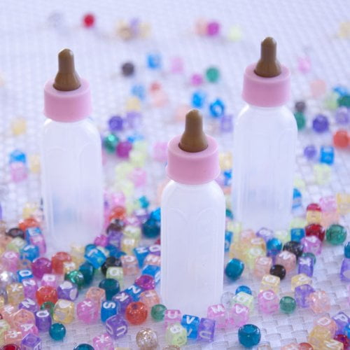 These mini baby bottles are the perfect party decor for your next baby shower, pregnancy announcement, gender reveal party, or baby’s birthday party. Great for baby shower games! Fill these baby bottles with little goodies or liquids for your guests to guess what’s in the bottle.3.5" tall mini baby bottles with removable topBottle is translucent plasticMade of plasticFillable with liquid only through small openingNote: Not a toy.20 per order.