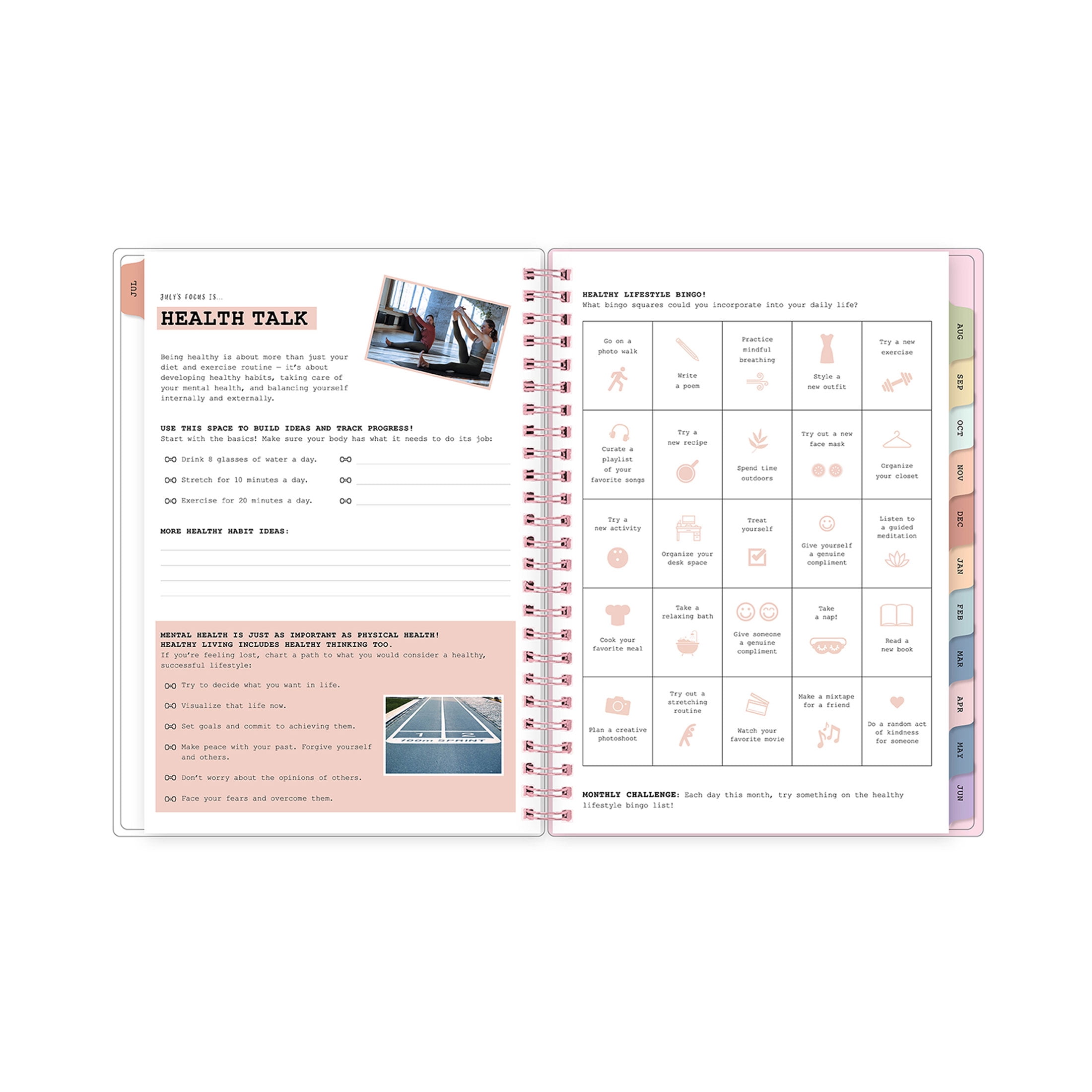 - Monthly content pages for awareness and self-care