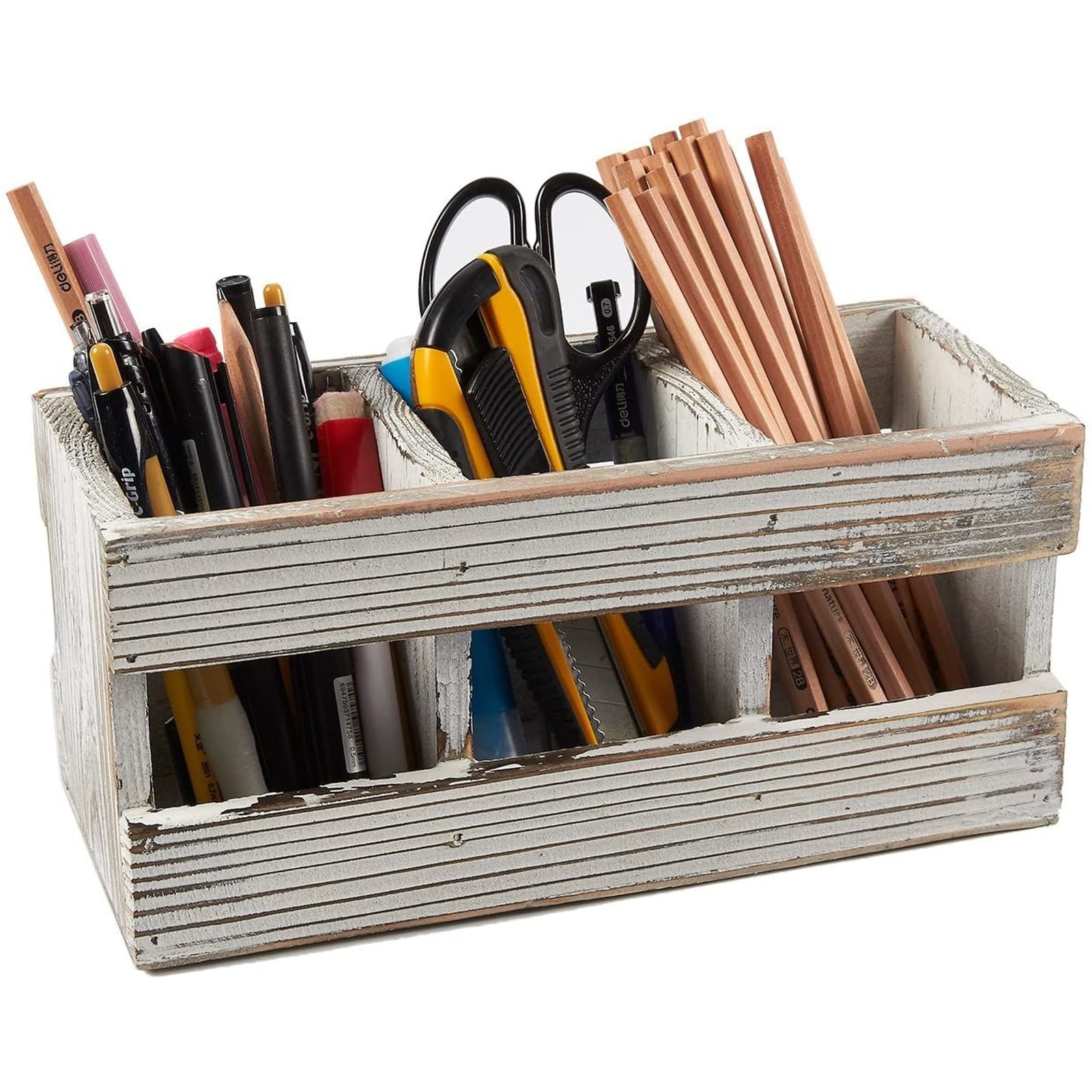 - Wood Desk Organizer: This desk organizer and pencil holder is great for storing miscellaneous office supplies or keeping your essentials organized