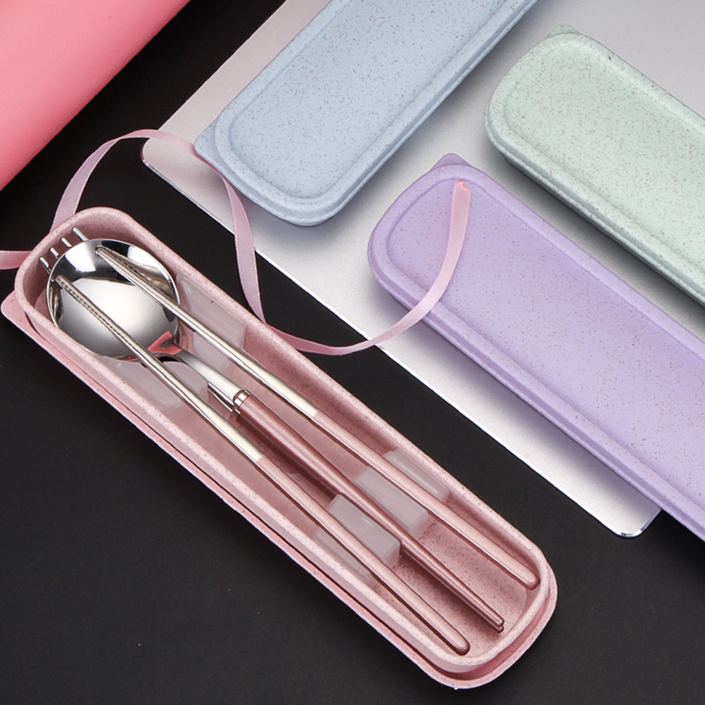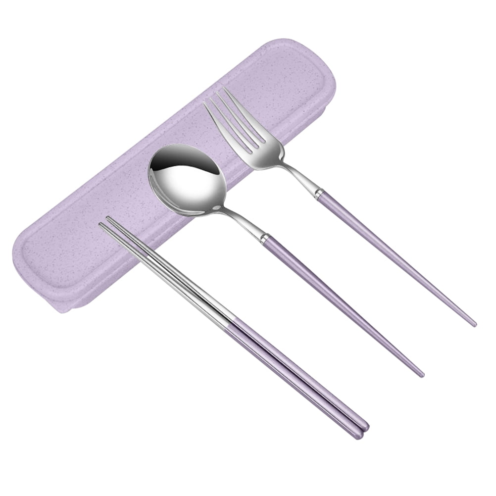 - The stainless steel 3 piece cutlery set (spoon, fork, and chopsticks)Great for traveling.