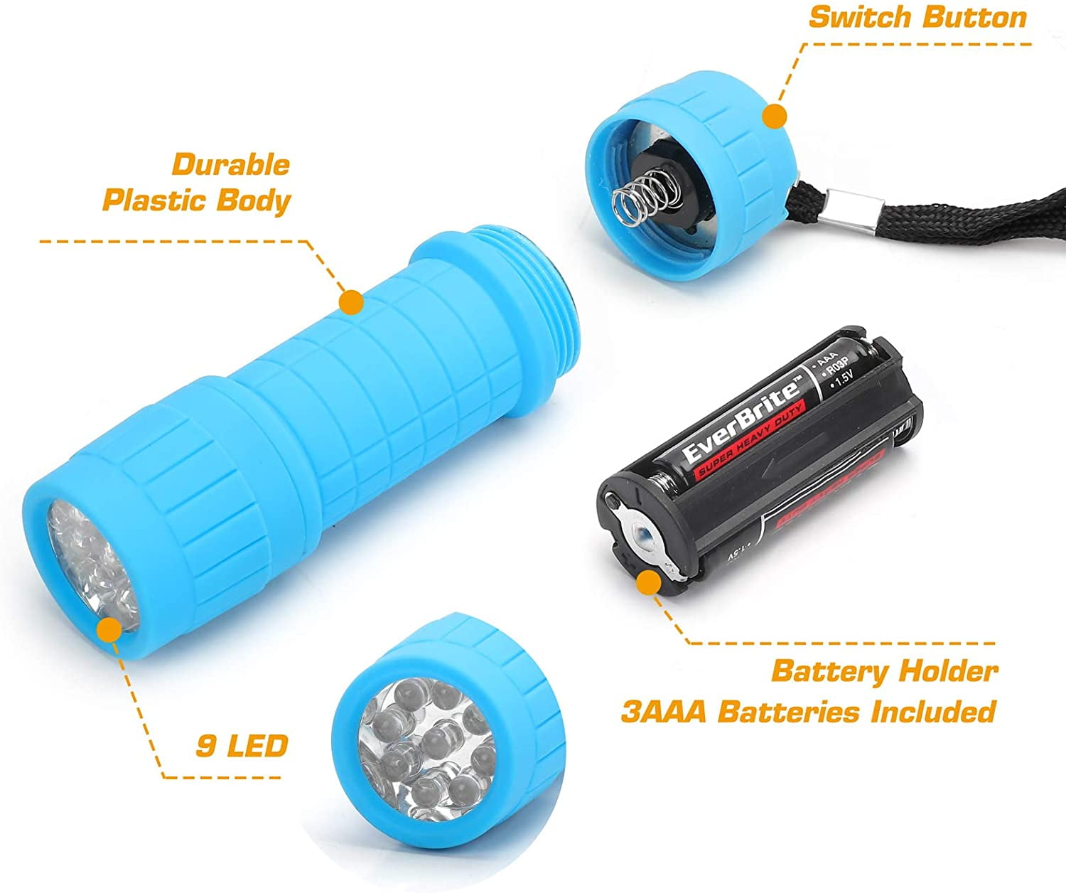 6 Pack 9-LED Mini LED Flashlight Set, Handheld Outdoor Flashlight, Torch Assorted Colors, AAA Carbon Zinc