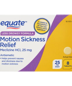 - 25mg of Meclizine HCI in each tablet, 8 ct. per package.