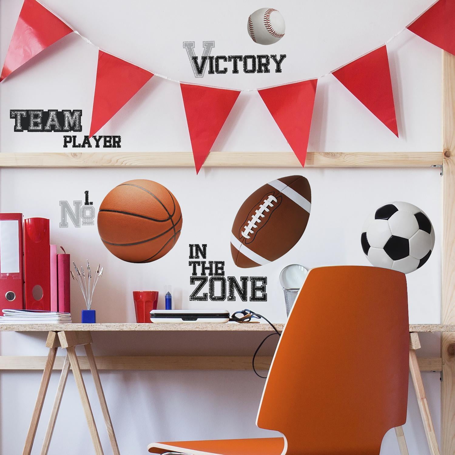 All Star SPORTS SAYINGS and Balls Wall Stickers 24 Decals Soccer Football Decor
