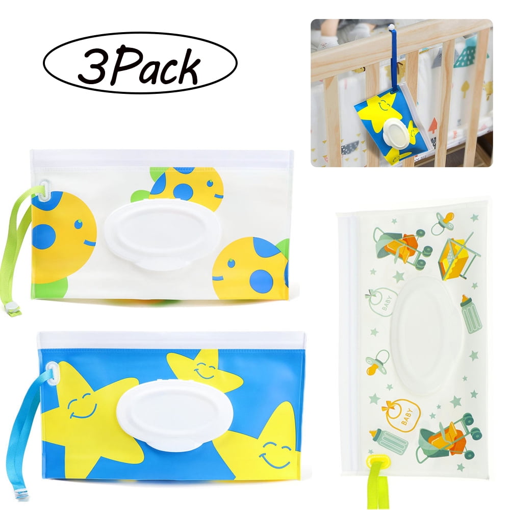 AMERTEER Portable Wet Wipe Pouch Bags Set, 3 Pack Wet Wipe Holder Container, Reusable and Refillable Personal Travel Wet Wipes Dispenser Cases-Keeps Wet Wipes Moist