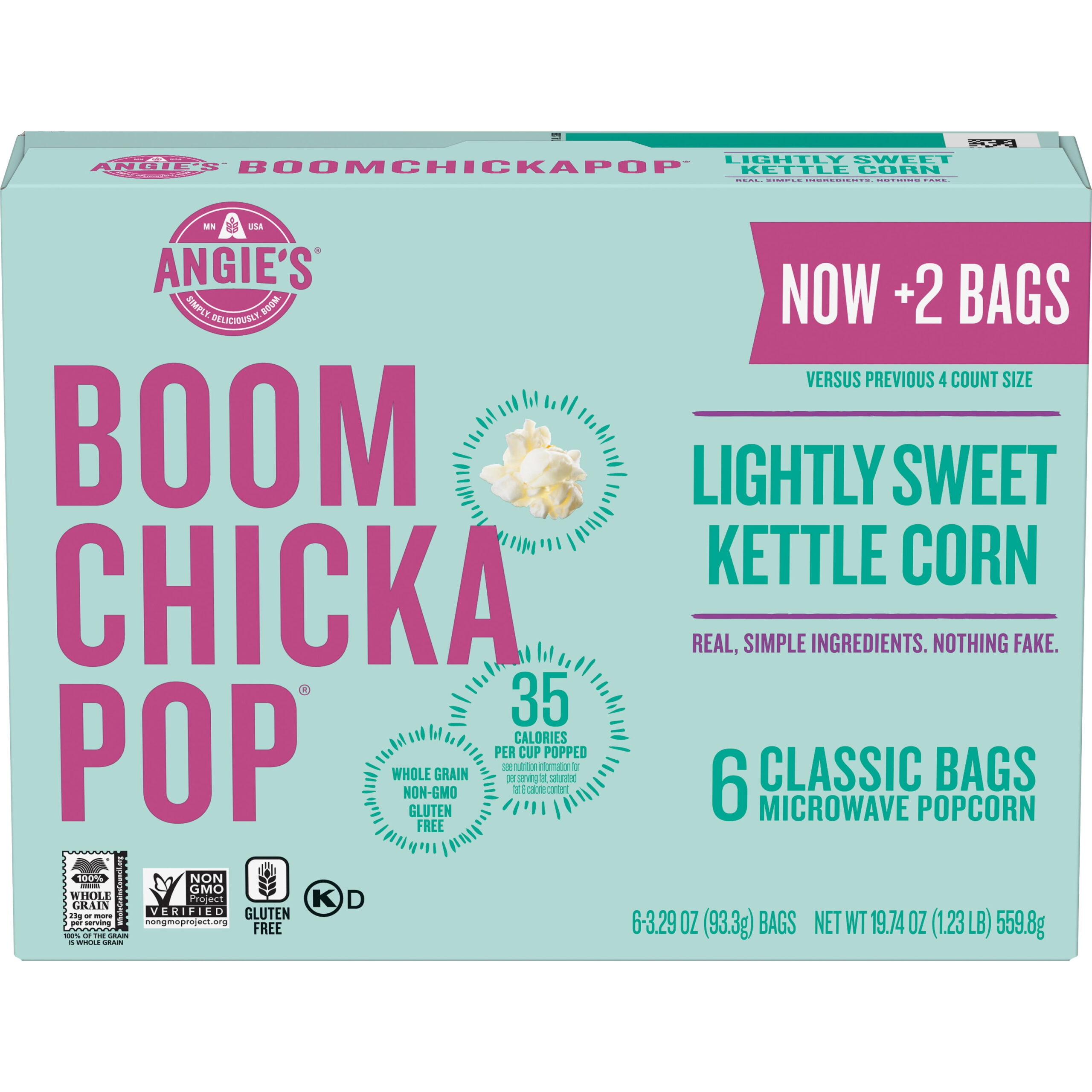 Angie’s BOOMCHICKAPOP Lightly Sweet Kettle Corn Microwave Popcorn, (6) 3.29 oz. bags