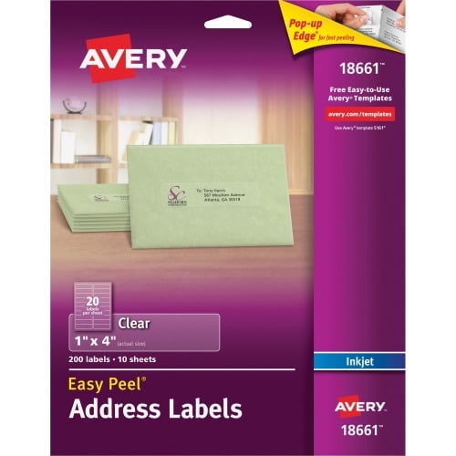 Avery Matte Clear Address Labels, Sure Feed Technology, Inkjet, 1′ x 4′, 200 Labels (18661)