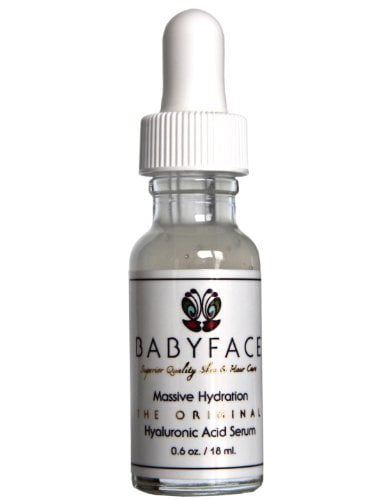 The unique blend of ingredients in Babyface’s original formula Massive Hydration Hyaluronic Acid Serum work together to make an absolute dreamy serum that is extremely potent against dehydration.The unique blend of ingredients in Babyface’s original formula Massive Hydration Hyaluronic Acid Serum work together to make an absolute dreamy serum that is extremely potent against dehydration. Give your face that youthful look of plump, dense skin. A healthy glow that comes from within!A thick serum, it plumps the skin by drawing in moisture and hydrating better than any other product on the market. The potent strength is so effective you will see results in only days. Our formula is a multi-purpose blend, excellent for hydration, but there are also plenty of other beneficial ingredients that help to (1) draw in moisture (2) help provide a protective barrier on the skin against damaging elements (3) help with retaining the moisture once it’s there. It also contains antioxidants, anti-inflammitory agents, circulation aids, and promotes blood vessel health which with regular use will help eliminate blood pigments in skin, such as under eye circles.If you’re not already using a Hyaluronic Acid serum for your skin’s health, it’s time!