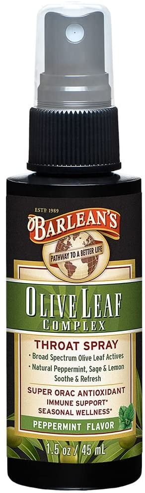 Barlean’s Peppermint-Flavored Nourishing Olive Leaf Complex Throat Spray – Super-Antioxident to Support Healthy Immune System (1.5 oz)
