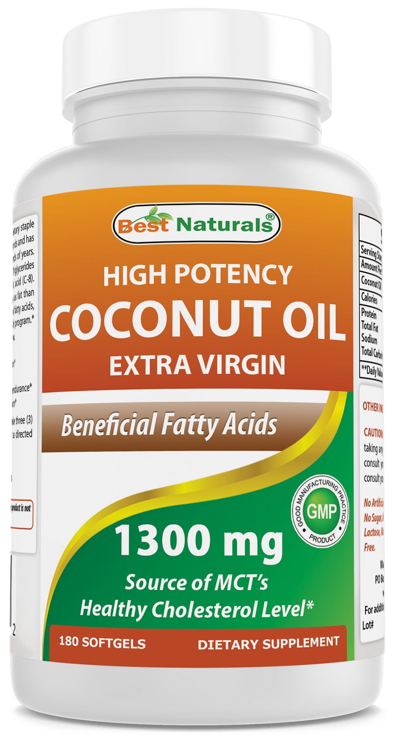 Best Naturals Coconut Oil 1300 mg 180 Softgels | Organic High Potency Extra Virgin