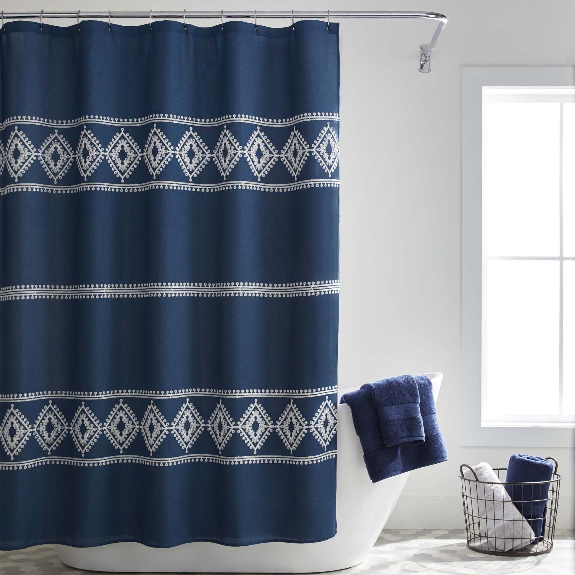 Better Homes & Gardens Embroidered Diamond Polyester Shower Curtain, 72′ x 72′, Navy