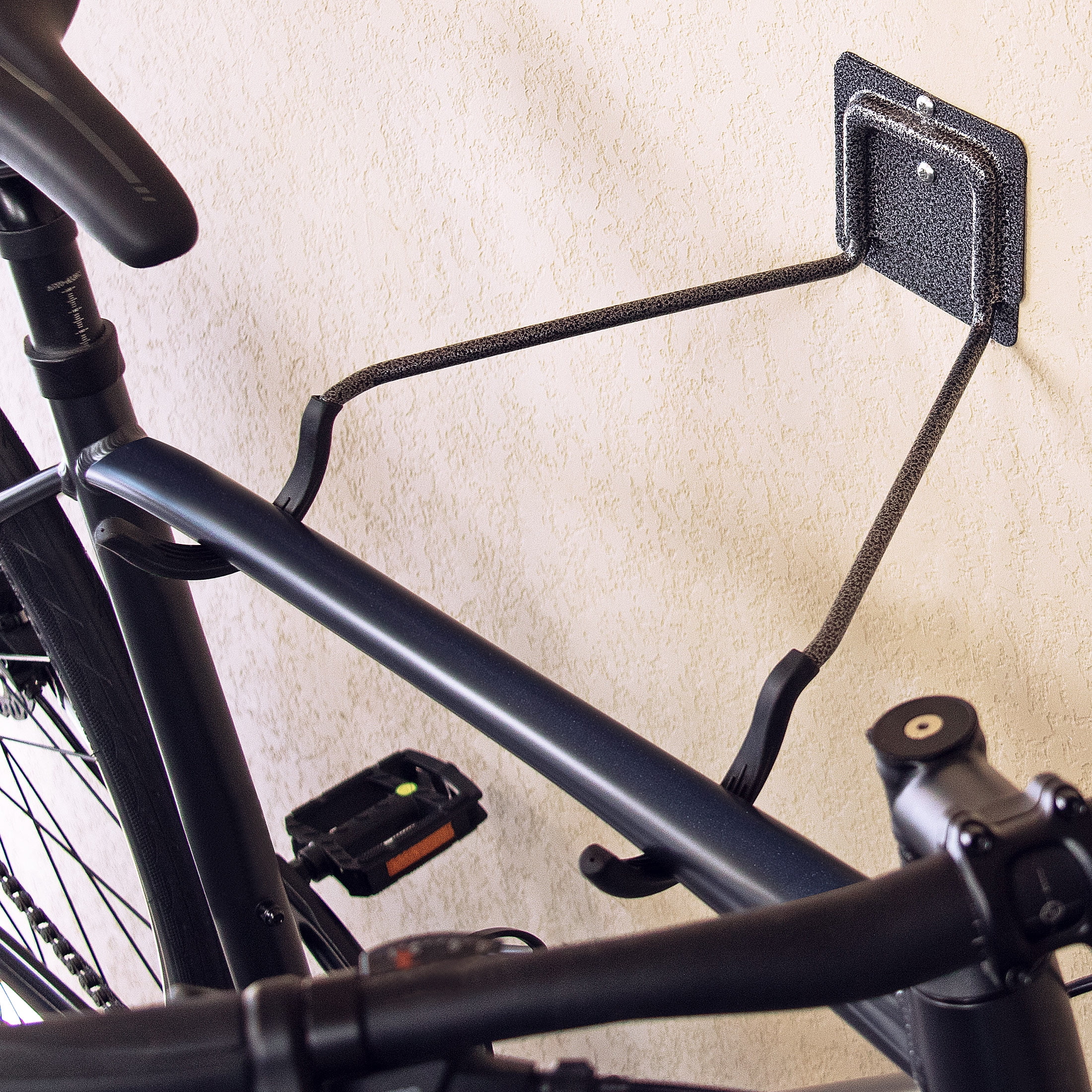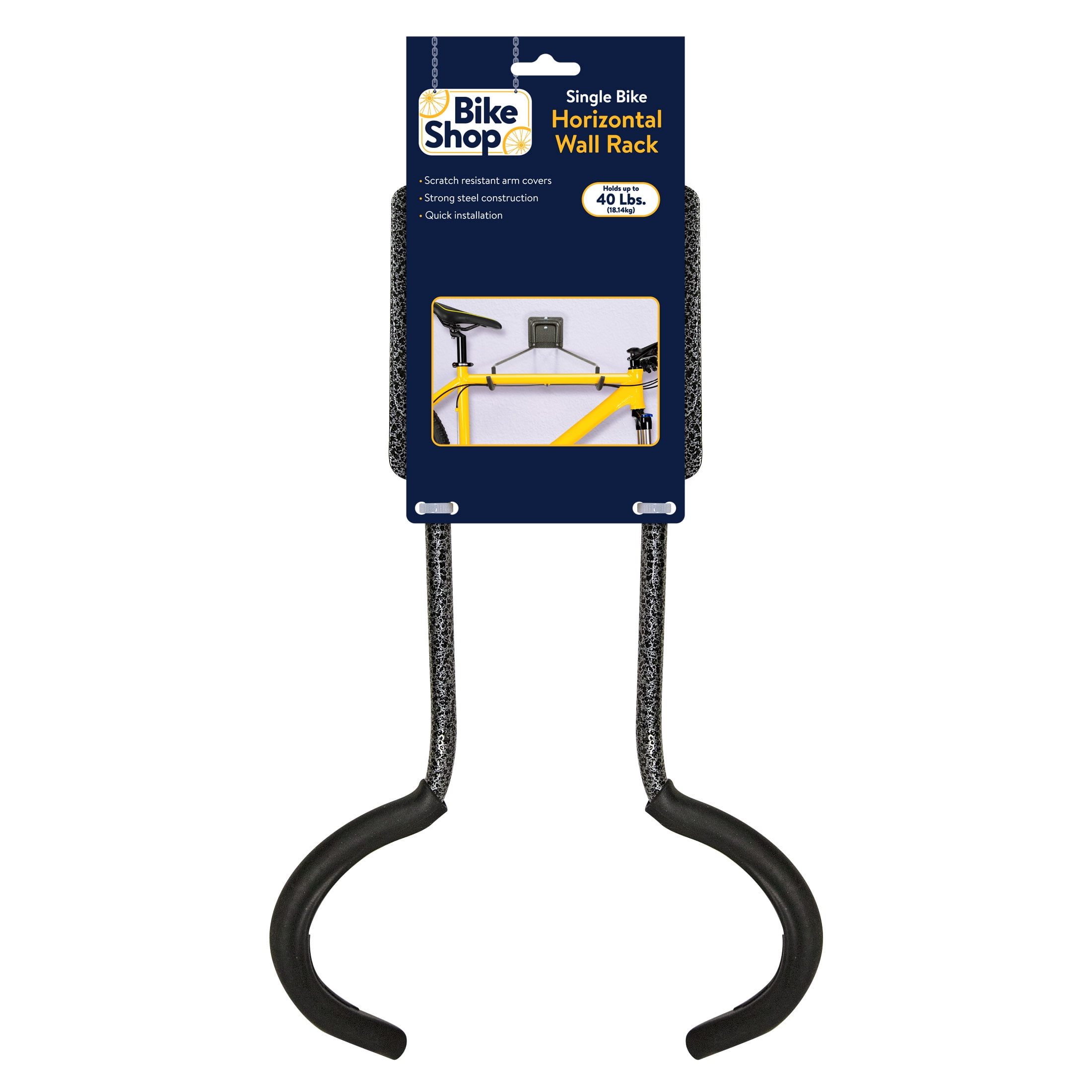 The Bike Shop Single Bike Horizontal Wall Rack allows you to reclaim your garage floor space. The Bike Shop Horizontal Wall Rack allows you to keep your bike out of the way when not in use, but is easily accessible when you’re ready to ride. The Bike Shop Horizontal Wall Rack features an innovative and unique solution for storing a wide range of bikes including BMX, road and mountain bikes. The Bike Shop Horizontal Bike Rack features a TRP coating to prevent scratching your bike and is made from durable steel that can hold a single bike up to 50lbs. The horizontal wall rack can be easily stud mounted in seconds.