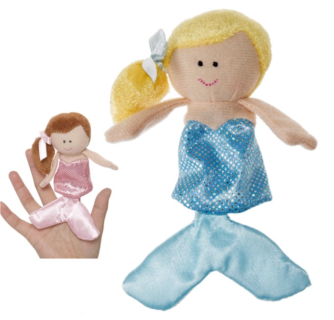 Blond Haired Mermaid With Light Blue Colored Dress Finger Puppet – By Ganz