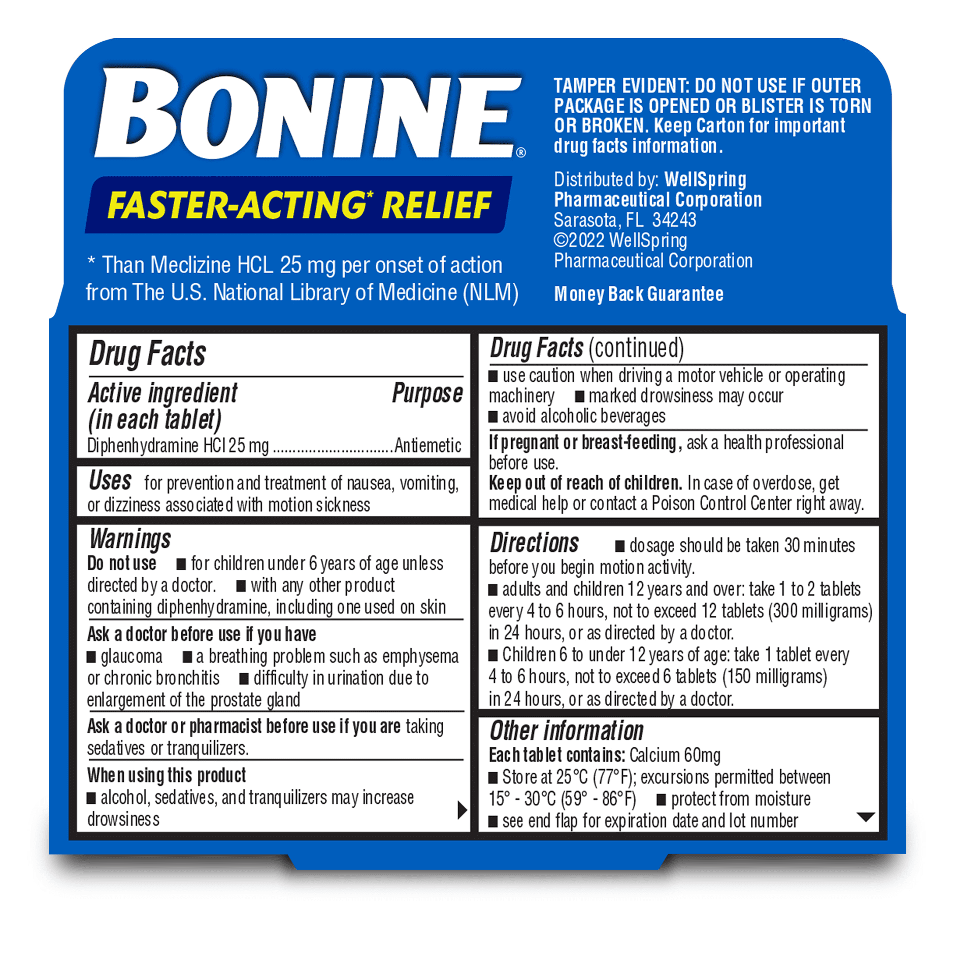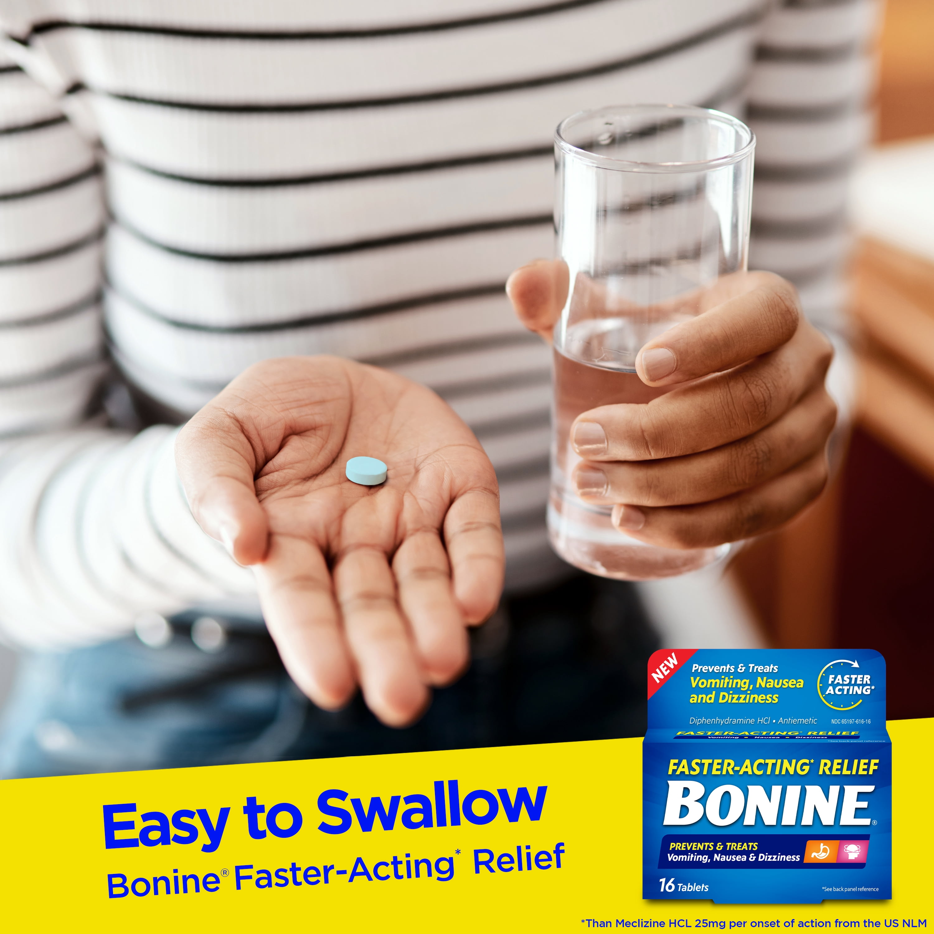 Bonine Faster Acting Nausea Dizziness and Motion Sickness Relief Tablets, 16 ct