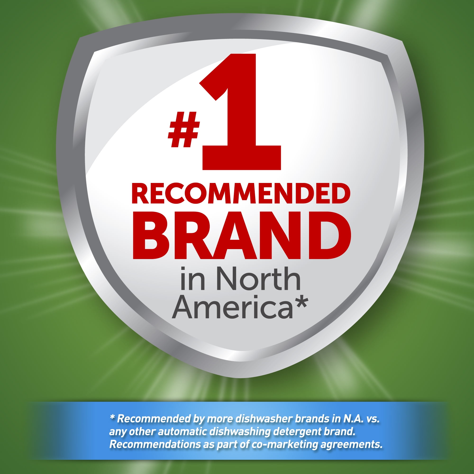 - #1 recommended brand in North America* *Recommended by more dishwasher detergent brands in N.A. vs. any other automatic dishwashing detergent brand. Recommendations as part of co-marketing agreements.