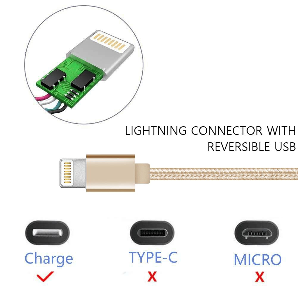 Charger, 2-Port Travel Adapter 2.4A Cube with 2-Pack 10FT Nylon Braided Cables Charging Charge Cable Cords Compatible with iPhone X/8 Plus/7 Plus/6S/6 Plus/5/5S/5C/XS/XR/XS Max/iPad Case – Gold