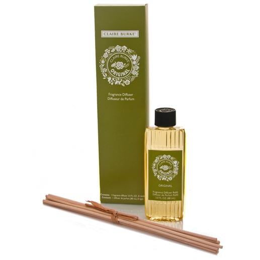 Claire Burke Fragrance Diffuser Refill 3 Oz. lets you keep using the gorgeous Claire Burke glass diffuser bottles or use your own decanter to express your style and enjoy your signature Claire Burke fragrance. Each refill comes with 3 fl oz of oil and 8 new reeds. This will refill the regular size diffuser one time or the mini diffuser twice. THIS REFILL IS FOR REED DIFFUSERS, NOT ELECTRIC DIFFUSERS.Claire Burke Fragrance Diffuser Refill 3 Oz. – Original lets you keep using their gorgeous glass diffuser bottles or use your own decanter to express your style and enjoy your signature Claire Burke fragrance. Each refill comes with 3 fl oz of oil and 8 new reeds. This will refill the regular size diffuser one time or the mini diffuser twice. Less waste and conveniently packaged to ship. The Claire Burke Original fragrance is a mix of roses, lavender and spice blended with patchouli and vetiver. THIS REFILL IS FOR REED DIFFUSERS, NOT ELECTRIC DIFFUSERS.