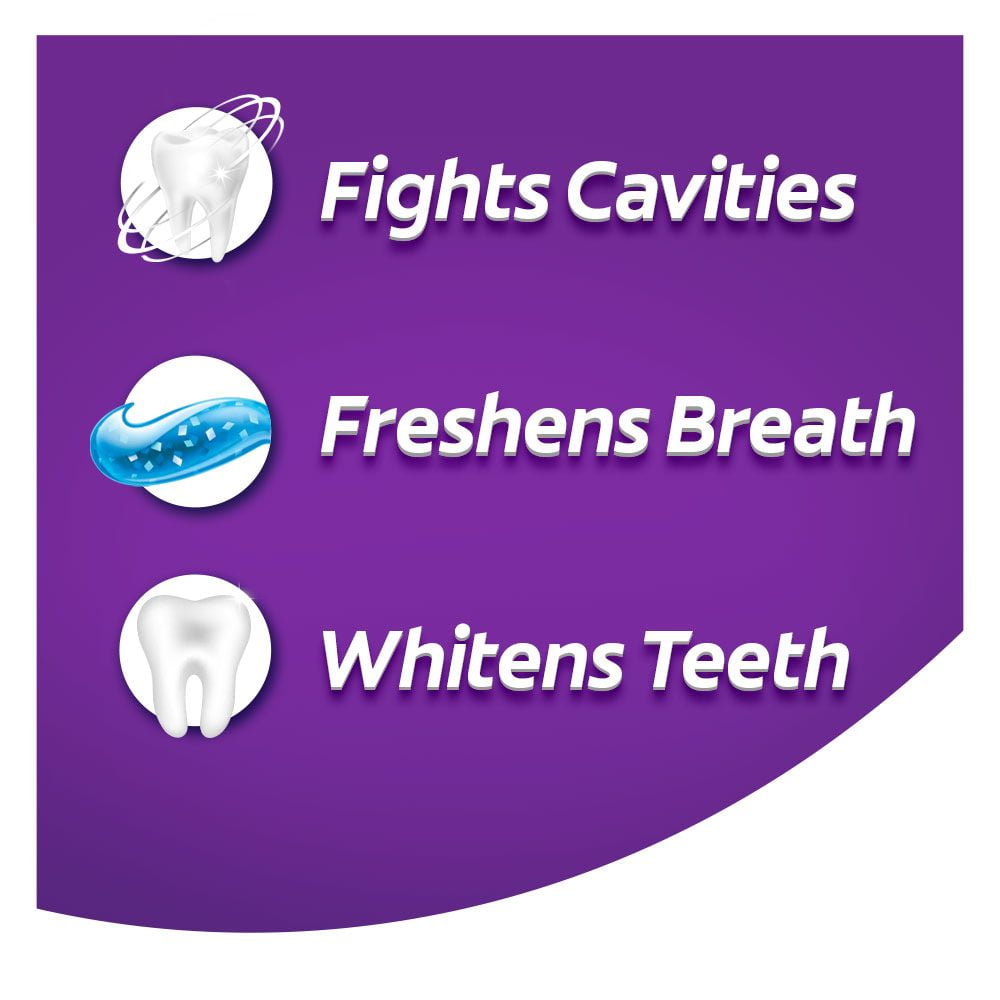 Easily stock multiple bathrooms with this convenient toothpaste value pack. Colgate MaxFresh has a new larger size (6.3 oz vs. 6 oz) and a powerful rush of freshness for long-lasting fresh breath. For good oral hygiene, brush your teeth twice a day for two minutes. You can smile confidently when you use Colgate Max Fresh toothpaste. Leave your mouth feeling fresh for hours with Colgate Max Fresh Knockout Toothpaste. Keep your cool with fresh breath toothpastes that give you the confidence to connect.
