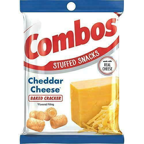 Combos Cheddar Cheese Baked Pretzel + Cracker Stuffed Snacks 6.3 Oz (2-Bags)Crunchy oven baked crackers & pretzels with creamy cheddar cheese flavored fillings create the perfect hunger management snack. Two hearty tastes – one filling snack – less mess! Enjoy the delicious taste of combos baked snacks. Deliciousness stuffed with awesomeness. Contains two (2) bags:One (1) 6.3-ounce bag of COMBOS Cheddar Cheese Cracker Baked SnacksOne (1) 6.3-ounce bag of COMBOS Cheddar Cheese Pretzel Baked SnacksCombos Cheddar Cheese Baked Pretzel + Cracker Stuffed Snacks 6.3 Oz (2-Bags))