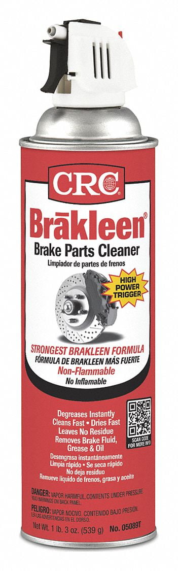Brake Cleaner and Degreaser, Cleaner Container Type Aerosol Can, Cleaner Container Size 20 oz, Net Weight 19.0 oz, Solvent, Non Flammable, Chlorinated, Cleaner VOC Range Contains No VOC, Ready to Use, Equipment/Machinery, Facility Maintenance, Fleet/Vehicle, Parts Washing, Clear, Boiling Point 250 Degrees F, Freezing Point -8 Degrees F, Flash Point 0 Degrees F, 1.62 Specific Gravity, Standards RoHS Compliant WARNING: Cancer and Reproductive Harm – www.P65Warnings.ca.gov – This item is banned in the following states: CA, NJCrc Brake Parts Cleaner,20 oz. Size 05089T