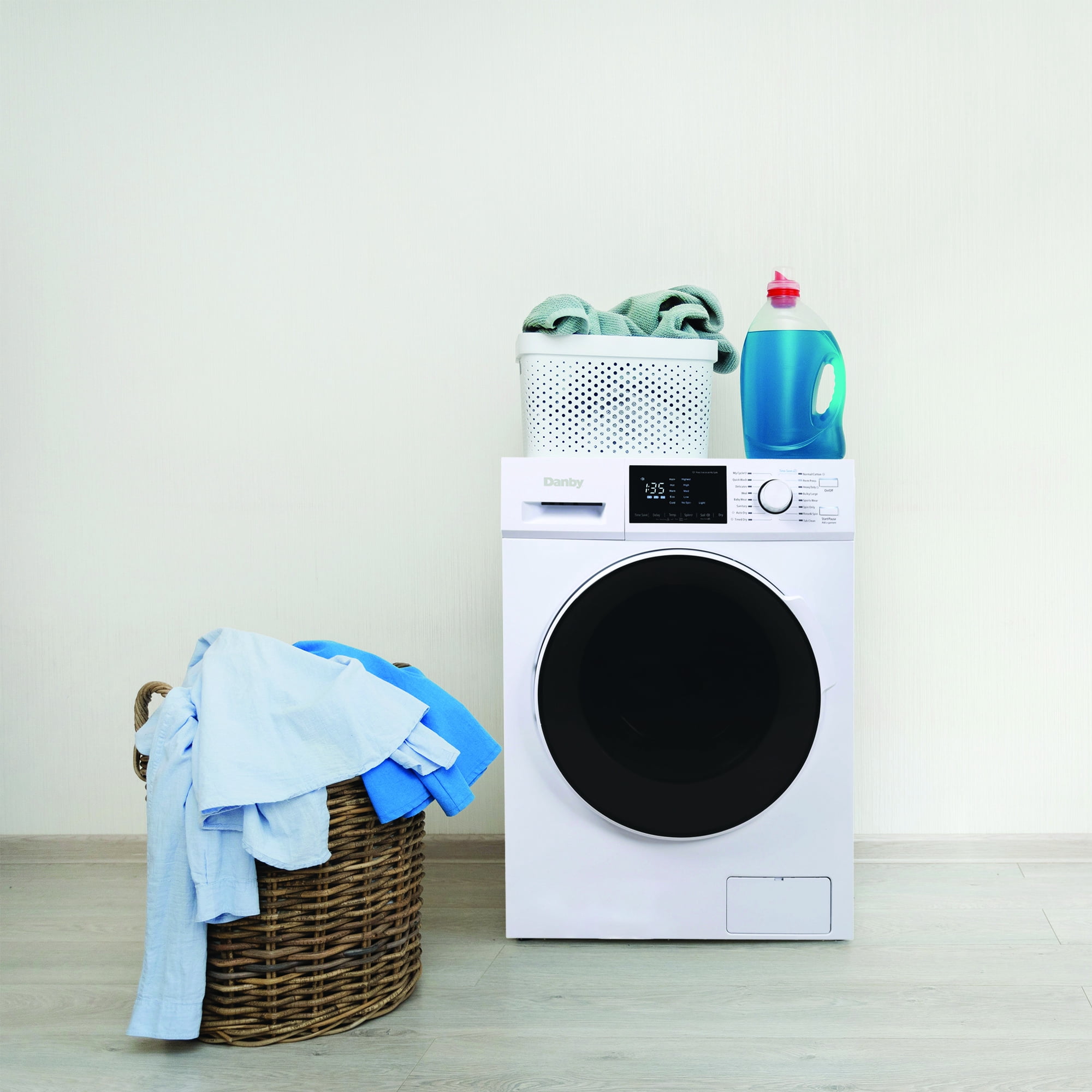 Get the convenience of in-home laundry, even in small spaces, with this 2.7 Cu.ft. All-In-One Vent less Washer Dryer Combo by Danby. The compact size (24in) and front-load design give you plenty of options on where to store your unit. Choose between 14 wash cycles and 2 drying cycles to accommodate all your various laundry needs. This washer dryer combo offers "My Cycle", a feature that allows you to customize your washing cycle and remember your favorite program for next time. Additional features include a durable stainless steel drum, childproof lock, overflow protection and a time delay function.
