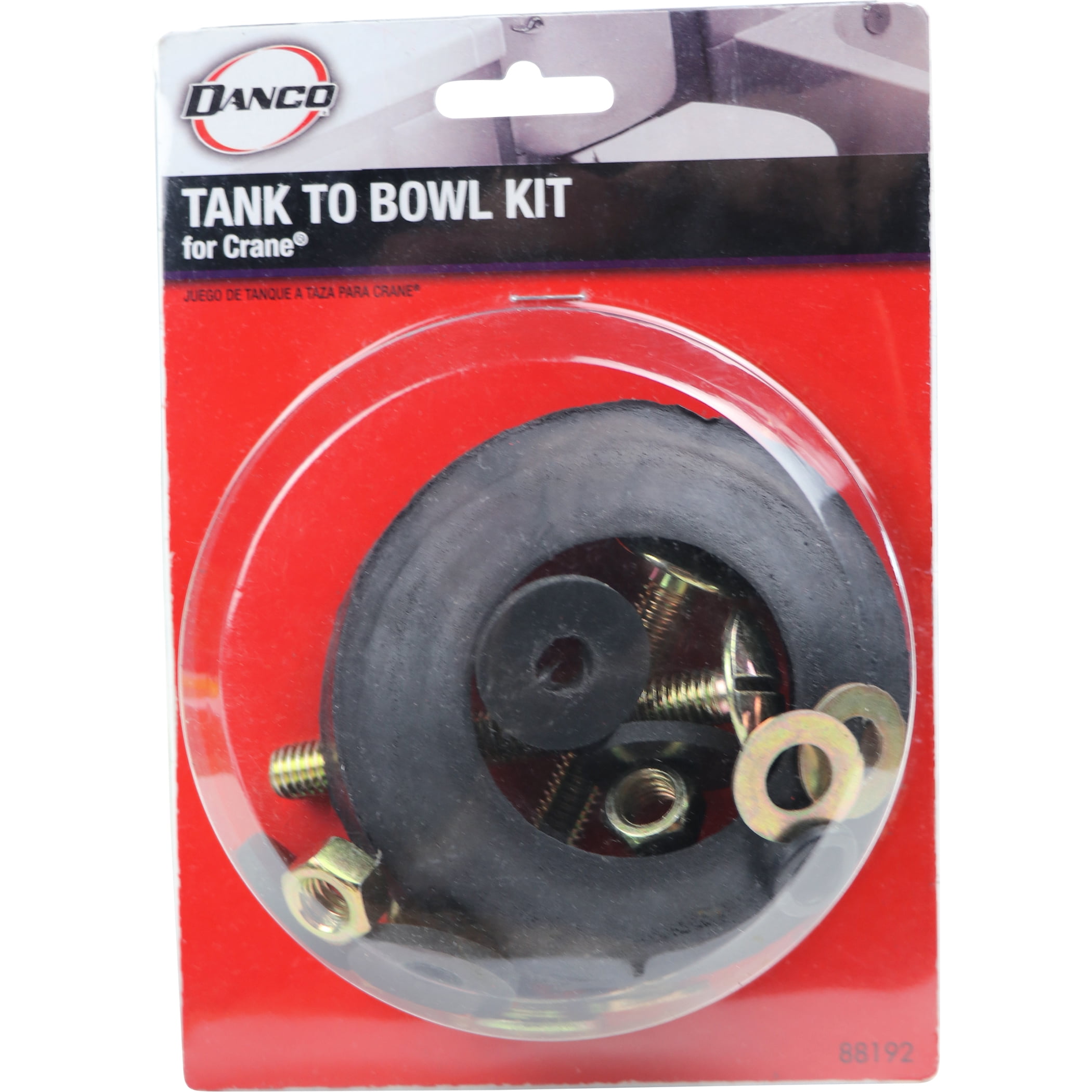 Replace worn tank-to-bowl bolts and gaskets with this Danco kit, it is complete and ready to go. It includes durable tank bolts and a sponge rubber spud gasket. Installing new parts will keep the toilet tank solidly attached and prevent leaks between the tank and the bowl.