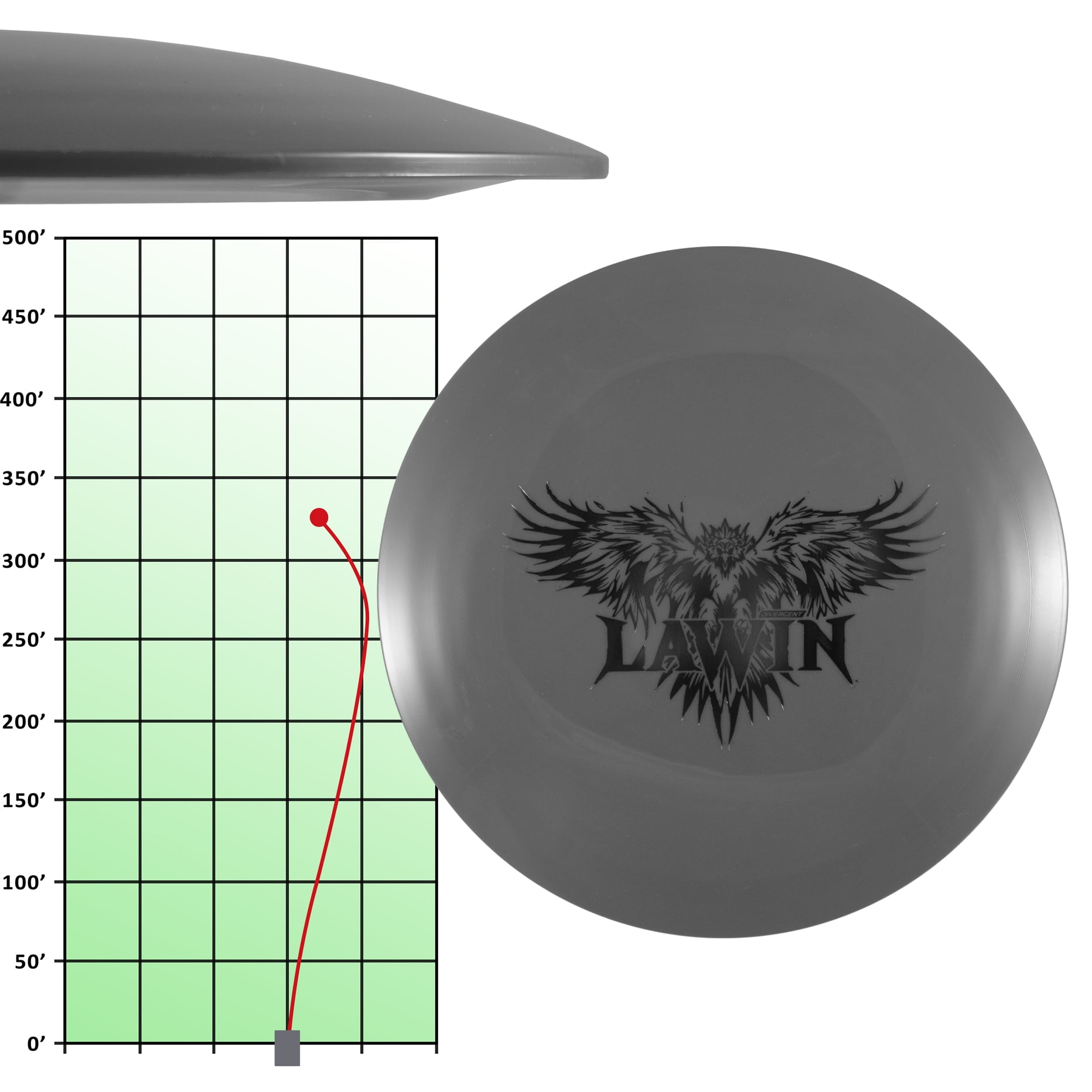 Lawin means ""Eagle"" and this high speed driver is designed to help recreational disc golfers break the 300 foot distance barrier. The Lawin can achieve a full S-Curve flight path with moderate power. If the Basilisk becomes too flippy, then the Lawin is the next disc to add to the bag. With its domey profile it also provides excellent glide to carry a few extra feet at the end of flight.