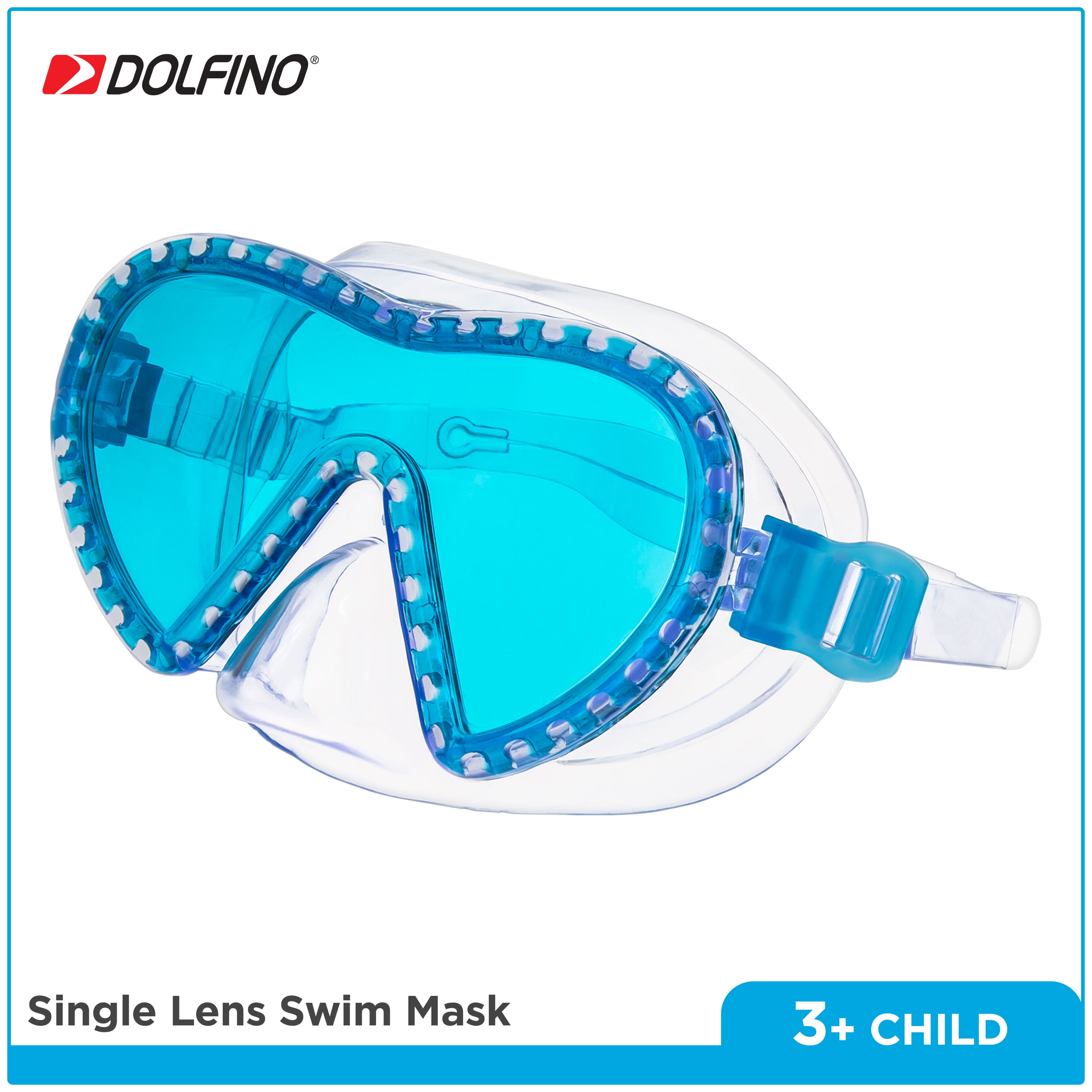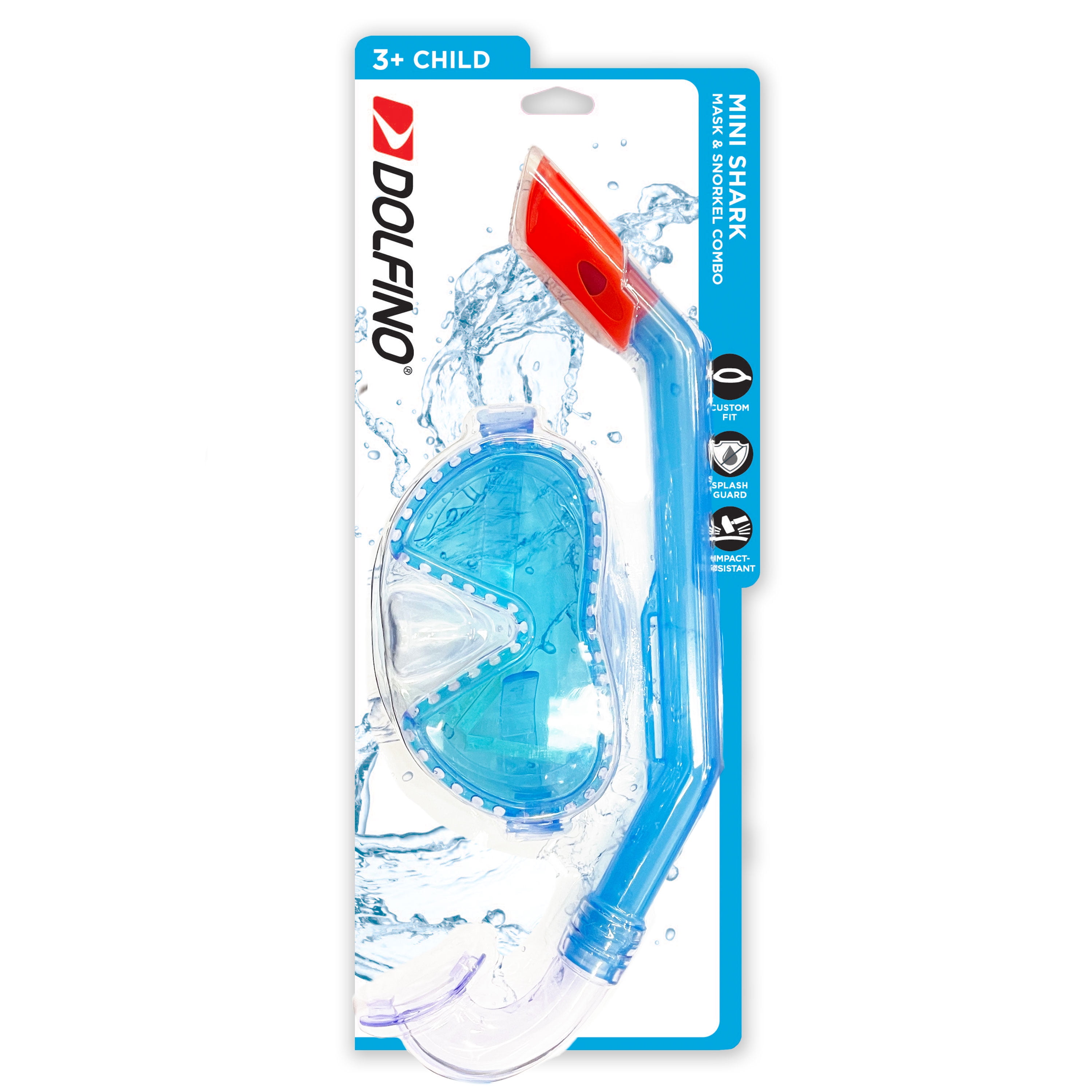 This recreational child mask and snorkel set combo will have your little swimmer exploring the wonders of the water in ease and comfort. Your little underwater explorer will always be up for adventure with this swim mask and snorkel combo. This playful combo set is perfect for kids looking to have lots of water fun! This child mask and snorkel combo is hypoallergenic and latex-free so skin irritation will never get in the way of swim fun. The single lens offers a full, uninterrupted view within a clean, frameless design. The tough and durable impact-resistant polycarbonate lens ensure your little one’s eyes are always safe and protected! The Dolfino snorkel has been designed with an angled barrel and incudes a built-in mask retainer for easier breathing, so your underwater explorer will be free to play, swim and discover all day! This child mask and snorkel set combo is recommended for children ages 3 and up.
