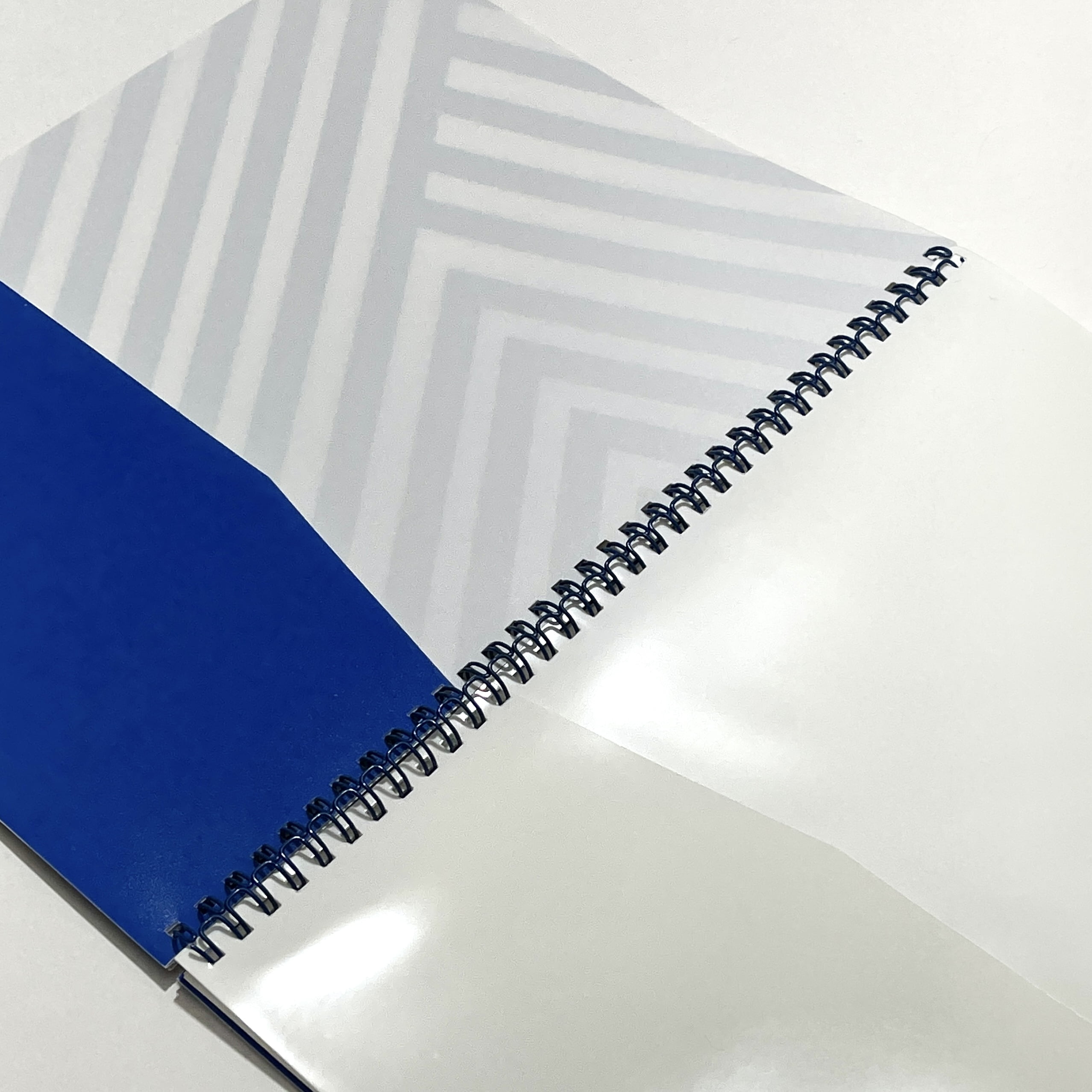 Durable Organization Spiral Poly Folder Double-sided Pockets 8 pockets in total: front and back cover has the inner pocket and 3 inner flexible folded plastic sheets with pocket on each side. Letter Sized 11.6×9.6 Inch