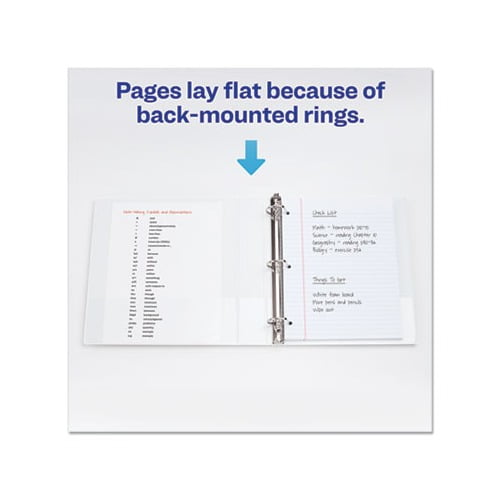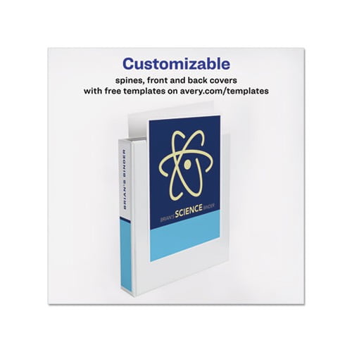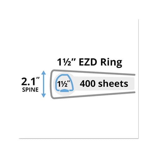 View Binder with EZD rings was designed with a purpose — to hold more pages in less space. EZD rings provide an increased capacity when compared to the same size slant or round rings. Tear-resistant DuraHinge design is stronger and lasts longer. DuraEdge feature makes the sides and top more pliable, providing greater split resistance. Deeply textured film offers a smoother finish and features a linen pattern for a high-quality look and feel. Durable construction is ideal for frequent referencing. Organize and secure papers within four interior pockets. Pages lie flat with back-mounted rings. Sturdy construction and clever design set a new standard in binder performance. Customize your binder with free templates and designs at Avery Design & Print Online. Nonlocking Rings. Binder Type: Ring Binder Style: View Binder Size Capacity: 1.5" Binder Sheet Capacity: 400. Green : Contains a minimum of 38% post-consumer recycled content, 38% total recycled content.