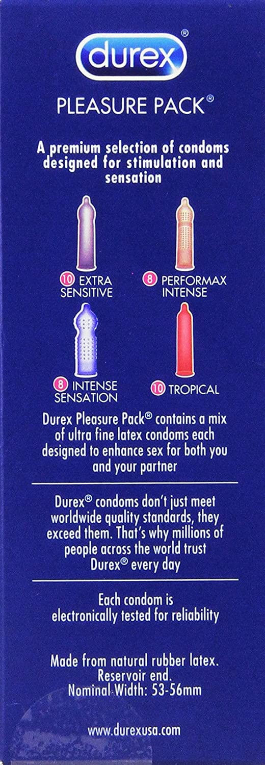 Durex Pleasure Pack, Assorted Lubricated Premium Condoms, 3 ct (Pack of 3)