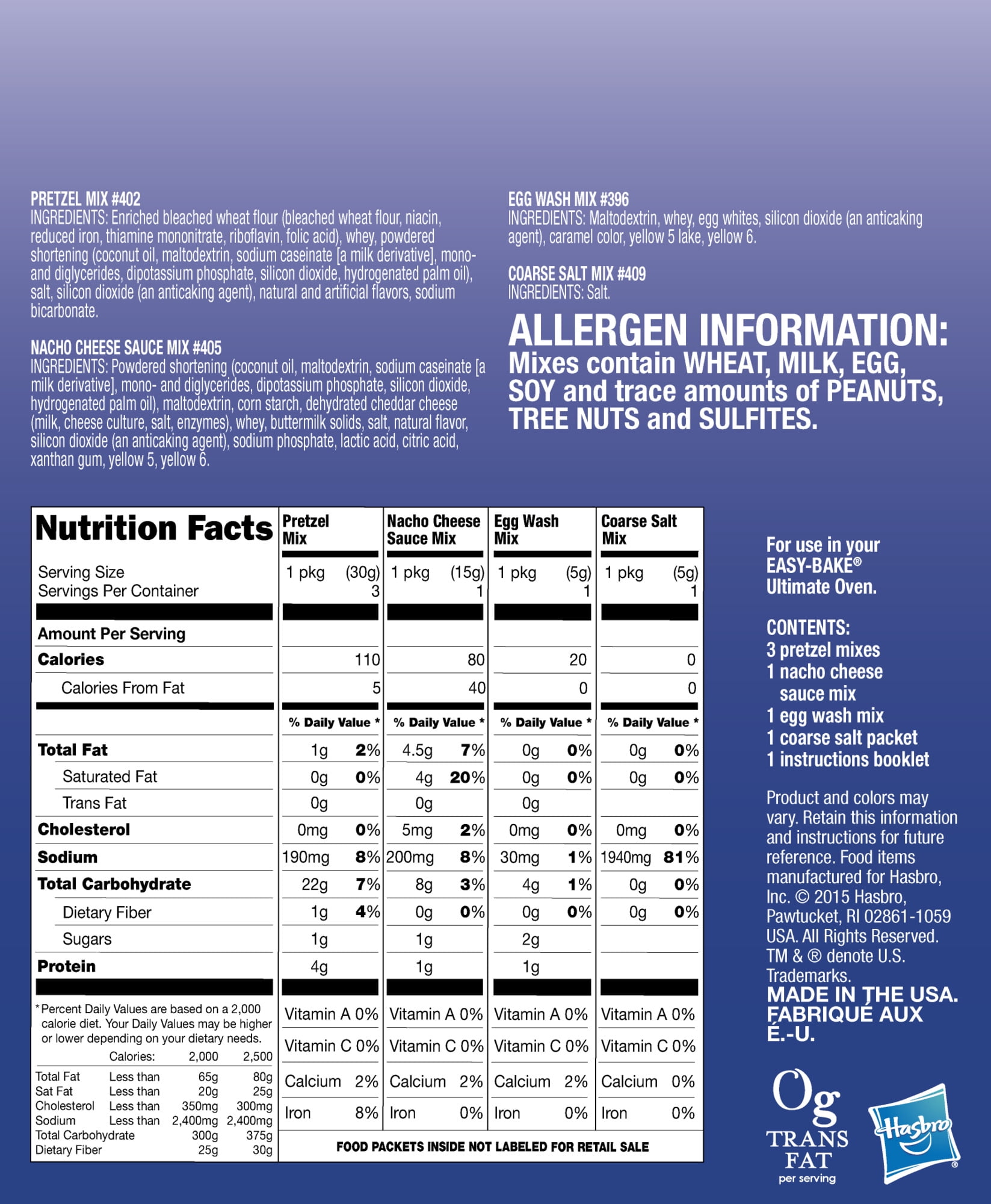 Ready, set, bake! Whip up any of these classic treats and wow both family and friends! Youxe2x80x99 ;re sure to feel like a real baking star when making classic treats such as mini whoopie pies, cake bars, cookies, pretzel dippers, and mini cheese pizzas. Mixes are each sold separately and can be used with any Easy-Bake Ultimate Oven toy (also sold separately). Ask an adult to supervise, then just follow the instructions included with each mix to create a taste sensation. Delicious!Easy Bake Refill 3-Pack: Pizza, Pretzel, and Whoopie Pie Mix (New & Improved – Now with 10 Oz!) MAKE DELICIOUSLY SWEET SNACKS: Such as mini whoopie pies, cake bars, or cookies WHIP UP SOME SAVORY TREATS, TOO: Like pretzel dippers or mini cheese pizzas SHARE YOUR YUMMY CREATIONS with family and friends FOR USE IN ANY EASY-BAKE ULTIMATE OVEN: Sold separately