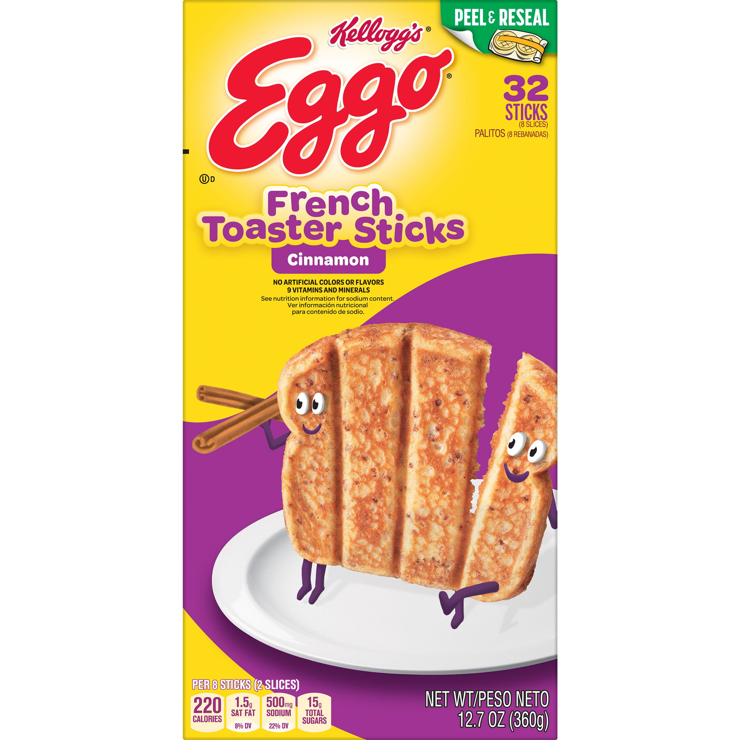 Wake up and greet the day with the feel-good taste of Eggo Cinnamon French Toaster Sticks. Includes one, 12.7-ounce box containing 32 French Toast Sticks. Crafted with delicious ingredients, our Toaster Sticks help bring energy to busy mornings. Convenient and easy to prepare, Eggo French Toaster Sticks bring warmth to your day. Great for families and individuals, these Toaster Sticks are delicious on their own; or try them with your favorite morning toppings like butter, syrup, fruit, and whipped cream. Made with no artificial colors or flavors, our Toaster Sticks also provide a good source of 9 vitamins and minerals (see nutrition information for sodium content), and are Kosher Dairy. Eggo Cinnamon French Toaster Sticks are great to bring along on the bus, in the car on the way to school, or even packed in a lunchbox, for a tasty snack on-the-go. Not just for breakfast you can enjoy these French toast sticks during snack time at home or as a late-night treat. So delicious, would you L’Eggo your Eggo?