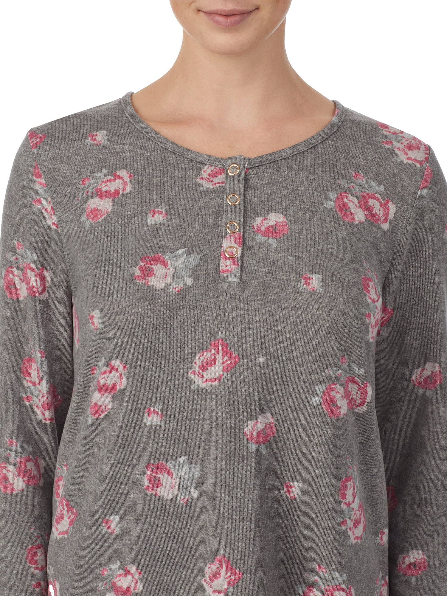 Sleep comfortably with style in this two-piece set from Ellen Tracy, the perfect balance between youthful attitude and grown-up glamour. The Henley top is accentuated with novelty trim details for a touch of sophistication. The pants are coordinated in a matching print with an elastic waistband with a drawstring that offers comfort without sacrificing style. Our Ellen Tracy collection is polished, inspired, and dynamic, as is the woman who wears it.