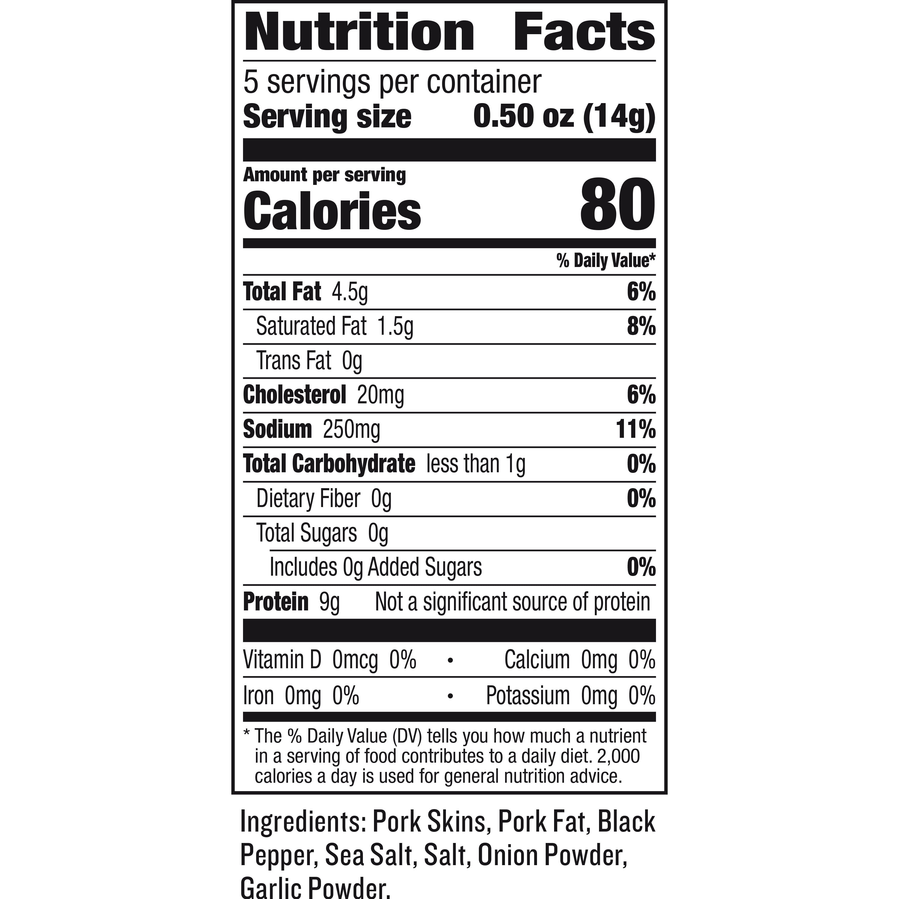 - BAG CONTAINS: 2.5oz pork rinds snack bag