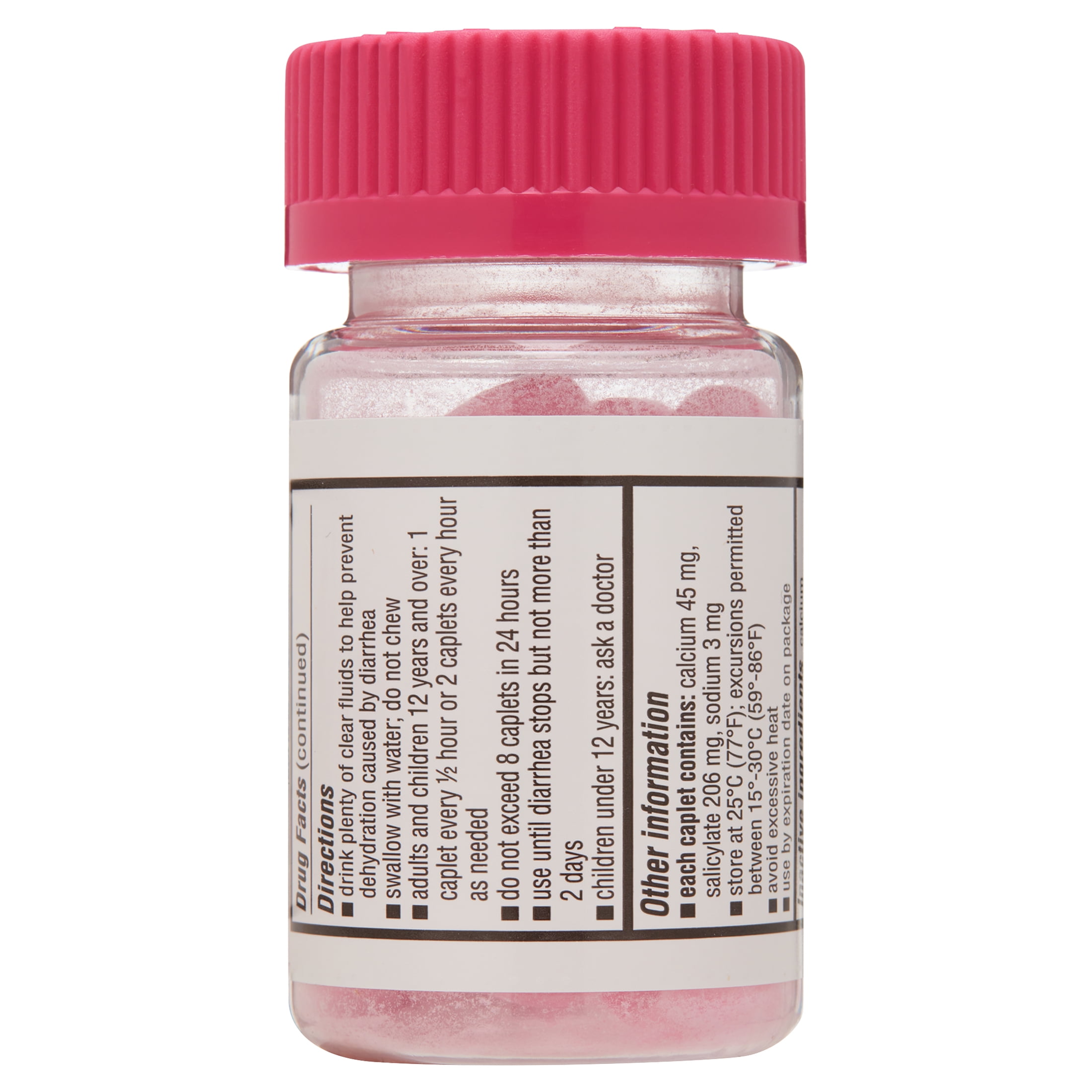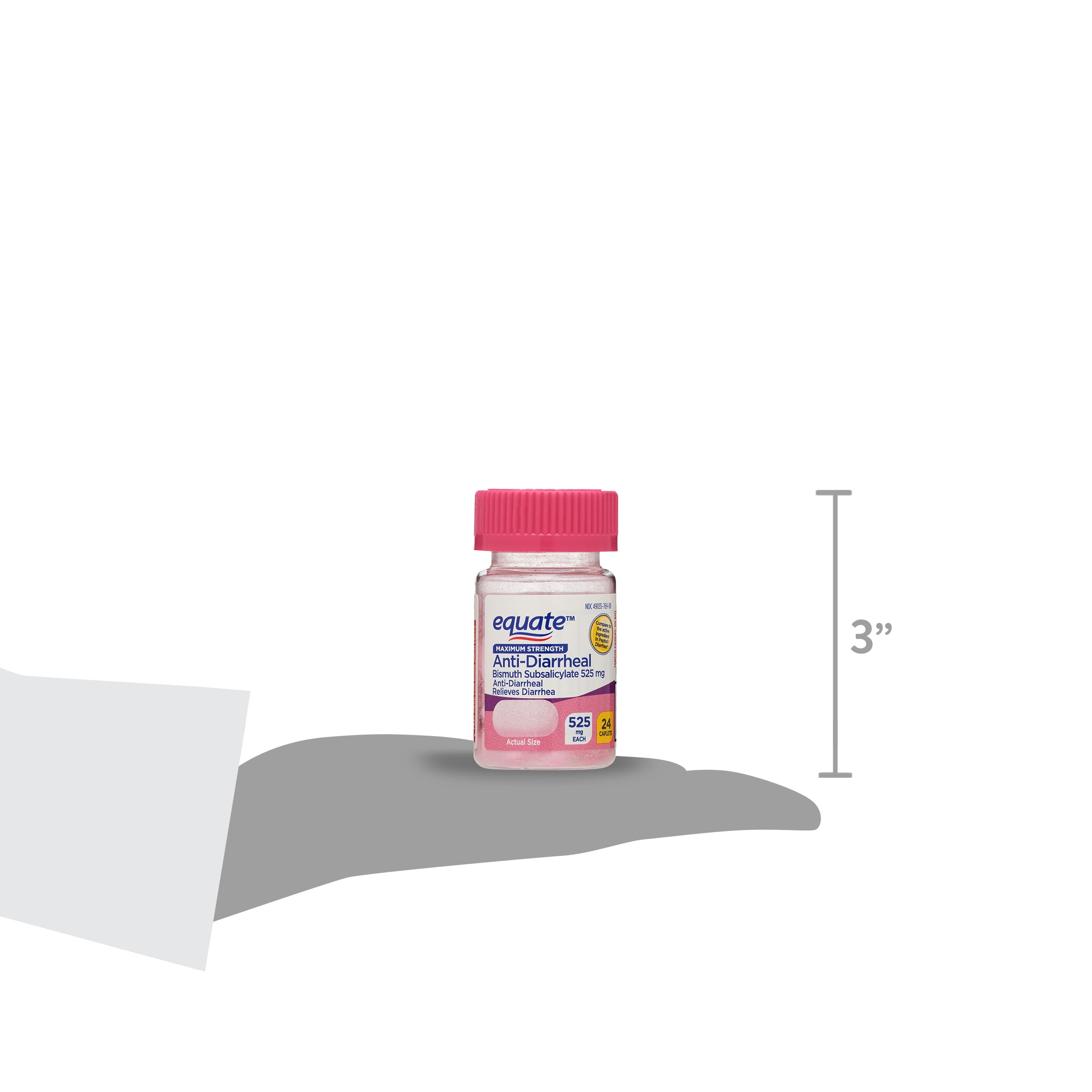 Whatever your stomach troubles may be, Equate Maximum Strength Anti-Diarrheal Relief Caplets with bismuth subsalicylate have got you covered. Each caplet contains 525 milligrams of bismuth subsalicylate, the same active ingredient found in Pepto-Bismol and other upset stomach relievers and anti-diarrheal. Keep these tablets handy for emergency stomach relief and get the comfort you need. Be prepared with Equate Maximum Strength Anti-Diarrheal Relief Caplets.