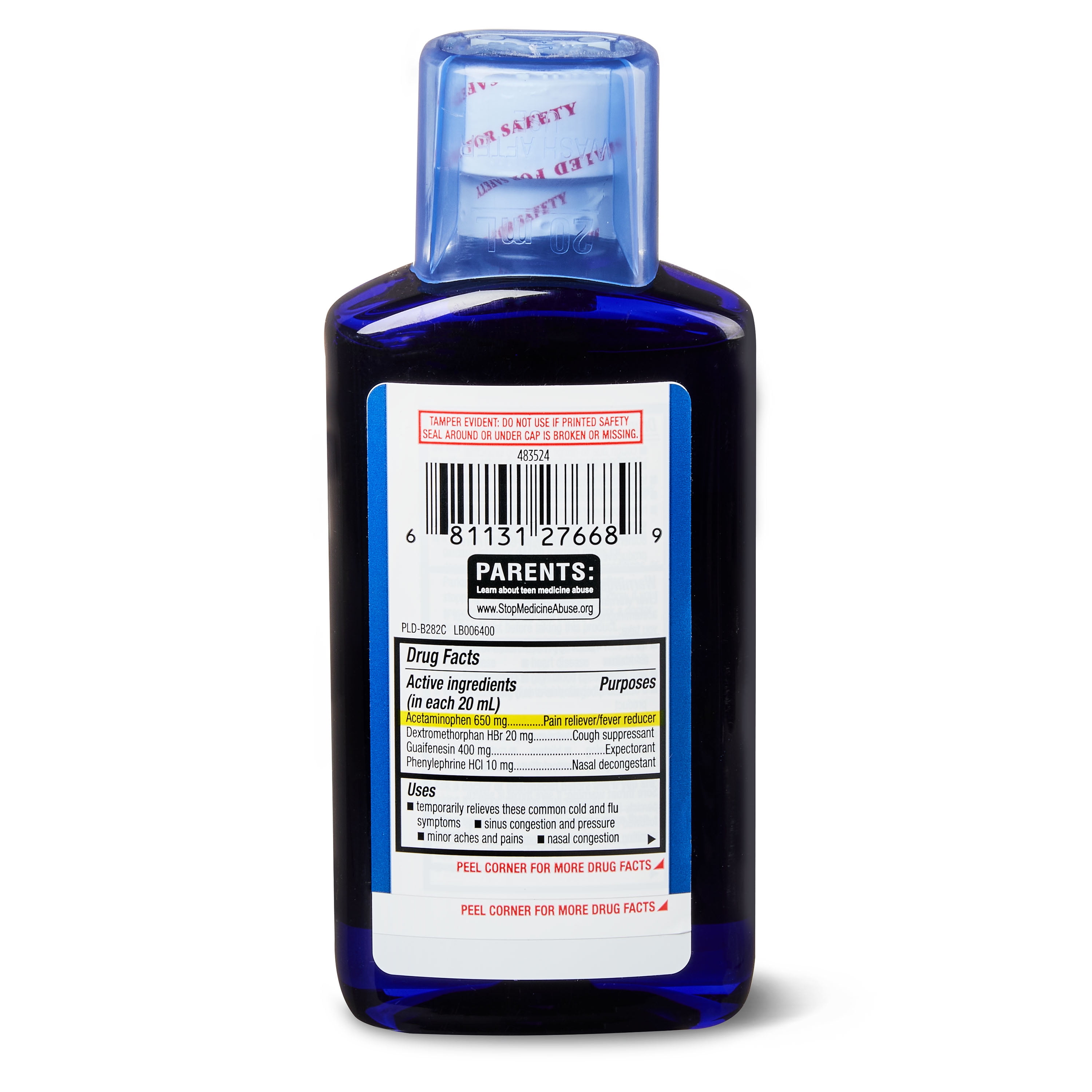 Help relieve cold and flu symptoms with Equate Maximum Strength Cold, Flu & Sore Throat. It offers multi-symptom relief from cough, nasal and chest congestion, sinus pressure and congestion, body pain, headaches, fever and sore throat. This special formula includes the pain reliever and fever reducer acetaminophen, the cough suppressant dextromethorphan HBr, the expectorant guaifenesin and the nasal decongestant phenylephrine HCI to give you the best relief from all your cold and flu symptoms. A dosing cup is provided for easy administration. Formulated for ages 12 and up. Use Equate Maximum Strength Cold, Flu & Sore Throat and get the relief you deserve. Making the right health decisions can be challenging. With a complete range of products and simple solutions, Equate allows you to take care of your family with confidence.