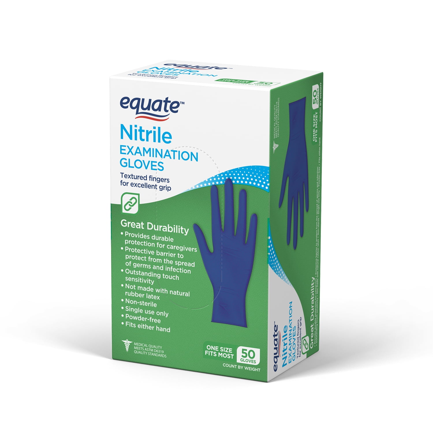 EQUATE NITRILE EXAM GLOVES, ONE SIZE FITS MOST, 50 COUNT